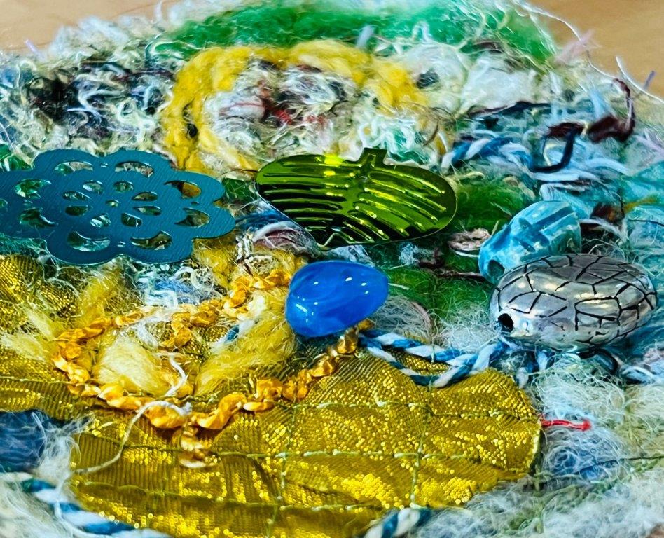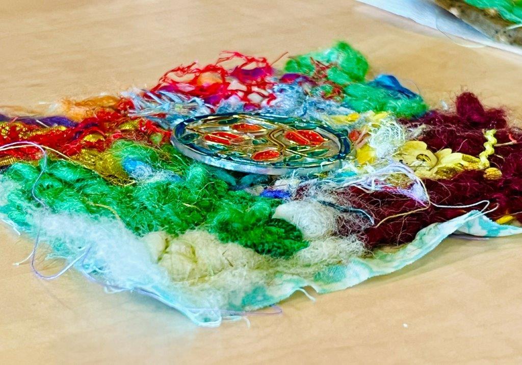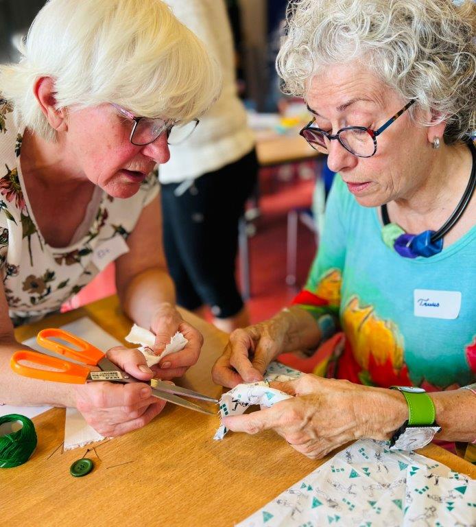 Een impressie van de workshop kleding pimpen tijdens de bijeenkomst van de vrijwilligers van Kieskleurig.